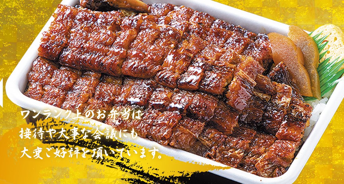通常会議・イベント等にぴったりのリーズナブルなお弁当や、特別会議等にもご利用頂ける上質な国産牛や炭火焼うなぎを堪能できるワンランク上のお弁当は、珠玉の味わいです。